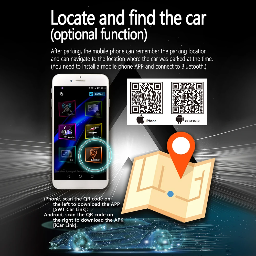 Автомобильный Мультифункциональный mp3-плеер, радиоприемник с Bluetooth, с функцией позиционирования, FM, Aux, USB