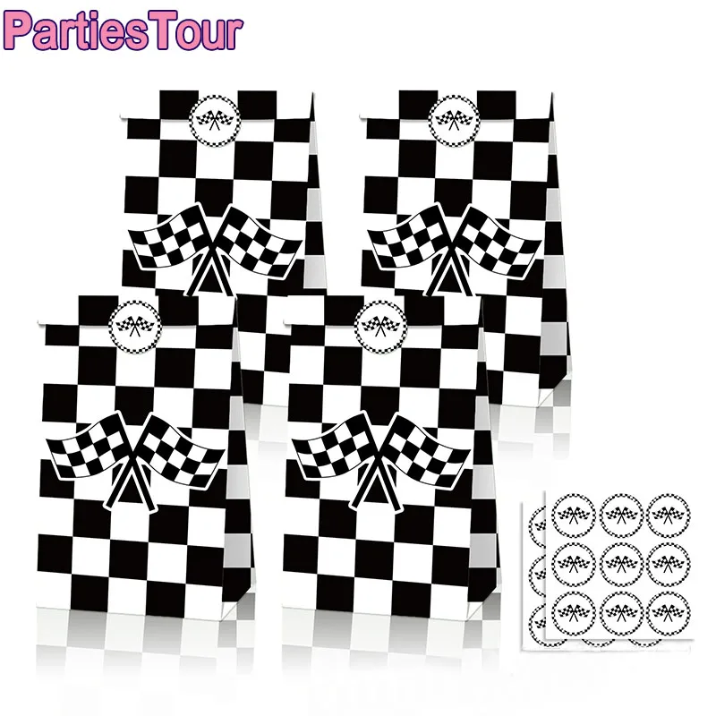 12 шт. вечерние сумки для гоночного автомобиля с клетчатыми гоночными наклейками клетчатые бумажные сумки для гоночного автомобиля для детей тематическая вечеринка на день рождения вечерние