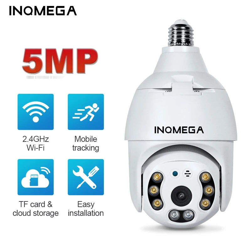 INQMEGA Tuya IP Wifi камера 5MP HD PTZ камера с полным освещением ночного видения двухсторонний разговор автоматическое отслеживание для внутреннего E27 лампы