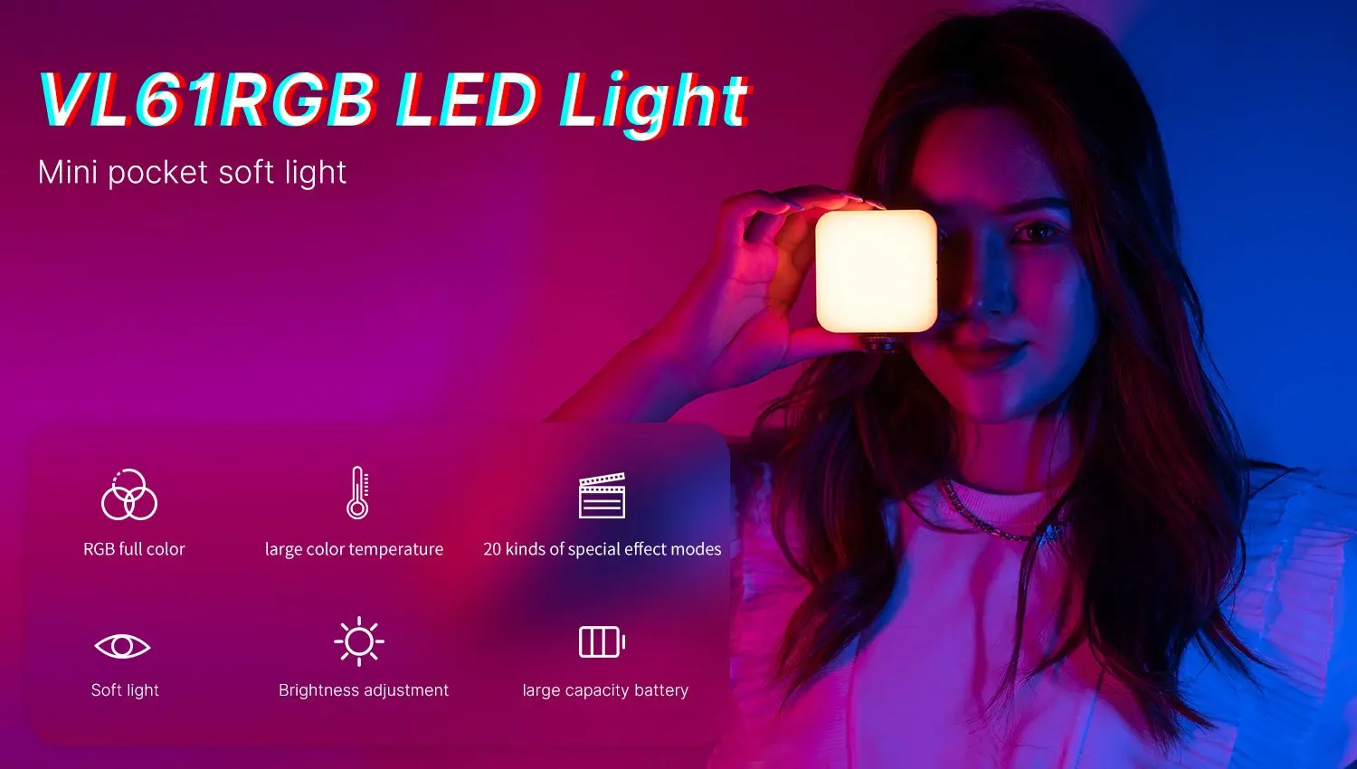 Ulanzi VL61 цветная (RGB) Светодиодная лампа для видеосъемки светил...