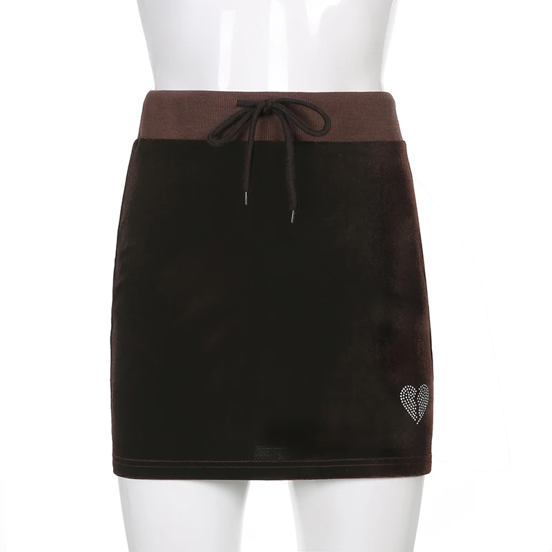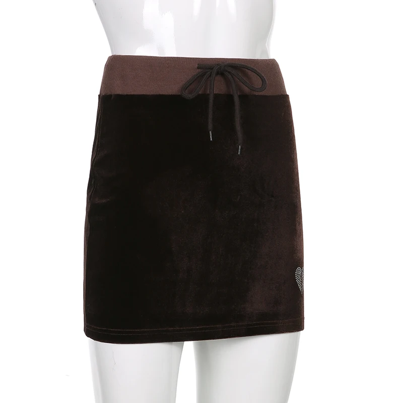 Винтажная модная велюровая облегающая мини-юбка Y2K в форме сердца ...
