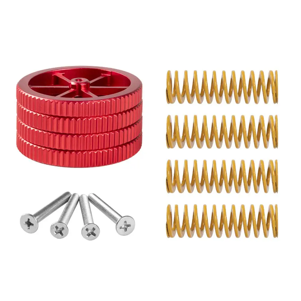 Маленькие желтые компрессионные пружины: компрессионные пружины-это достойное обновление, которое делает выравнивание кровати проще и прочнее, чем стандартные пружины, так что вам не нужно беспокоиться о выравнивании кровати после мытья. 4 штуки винтов M4 x 35 также включены.