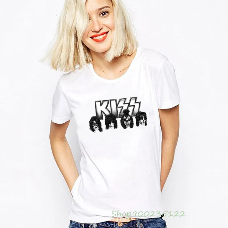 Футболка женская с надписью KISS, Модный повседневный топ с принтом Рок rool, уличная одежда, на лето