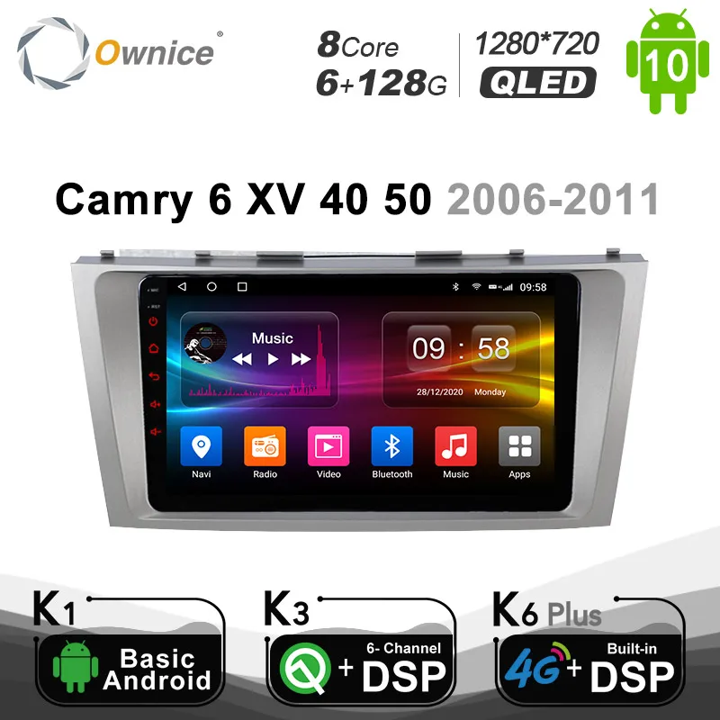 6G + 128G Ownice 2 Din 8 ядер Android 10,0 автомобильный DVD GPS Navi для Toyota Camry v40 2007 - 2011 2013 4G LTE DSP SPDIF 1280*720 BT 5,0 Подходит для Для Toyota Camry 6 XV 40 50 2006 - 2011 Если оригинальное автомобильное радио имеет функцию ниже, совместим ли блок Ownice Head? * Вариант 1-кабель XC601A без Canbus, поддержка: Управление рулевым колесом (требуется изучение); Оригинальный AUX.* Вариант 2-кабель XC601B с Canbus TY-SS-01, поддержка: Управление рулевым колесом (требуется изучение); Оригинальный AUX; Оригинальный усилитель JBL. Внимание: Приведенная выше информация только для справки, иногда она может не быть совместима с некоторыми автомобилями, потому что автомобили производятся в разных странах в разных летних вариантах, спасибо за понимание. K6 Plus 128G ---UIS7862| Android 10,0 |8 ядер (A75 * 2 + A55 * 6) | 6G + 128G | 2.5D + IPSQLED 1280*720 | Радио 7708 | Усилитель 7851L K6 Plus 64G ---UIS7862| Android 10,0 | 8 ядер (A75 * 2 + A55 * 6) | 4G + 64G | 2.5D + IPSQLED 1280*720 | Радио 7708 | Усилитель 7851L K6 Plus 32G ----UIS7862| Android 10,0 | 8 ядер (A75 * 2 + A55 * 6) | 3G + 32G | 2.5D +IPS QLED 1280*720 | Радио 7708 | Усилитель 7388 K3-PX5 ------ PX5 | Android 10,0|8 ядер | 2G + 32G | 2.5D + TN1024*600 | Радио 7708 | Усилитель7851л K3-PX6 ------ PX6 | Android 10,0 | 6 ядер (A75 * 2 + A53 * 4)| 4G + 64G | 2.5D +IPS 1280*720 | Радио 7708 | Усилитель 7851LK1-Low ------- AC8227L | Android 6,0 | 4 ядра| 1G + 16G | 2.5D + TN 1024*600 | Радио 7786 | Усилитель 7388K1-High ------ AC8227L | Android 8,1 |4 ядра | 2G + 16G | 2.5D + TN 1024*600 | Радио 7786 | Усилитель 7388
