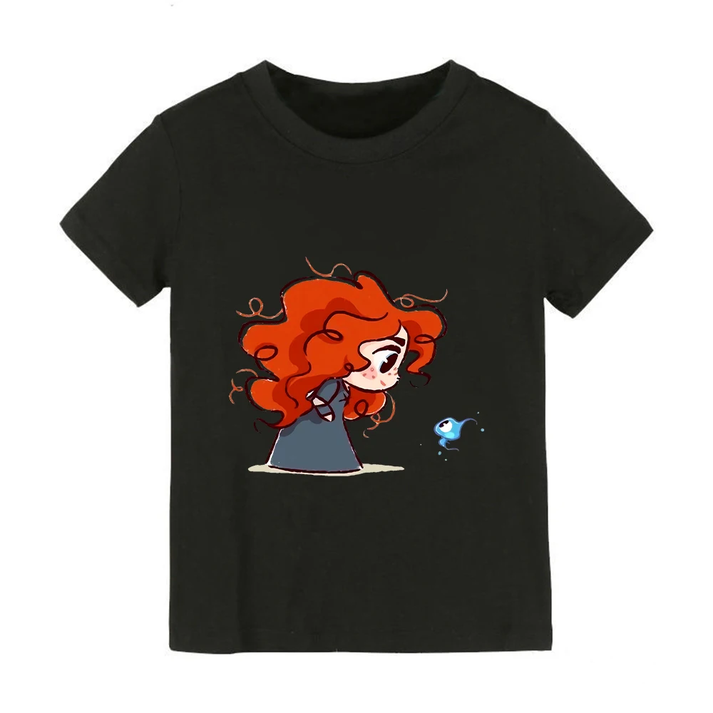 Черная милая детская модная футболка принцессы Мерида храбрости Харадзюку детская графическая Милая забавная футболка мультяшная футболка для девочек