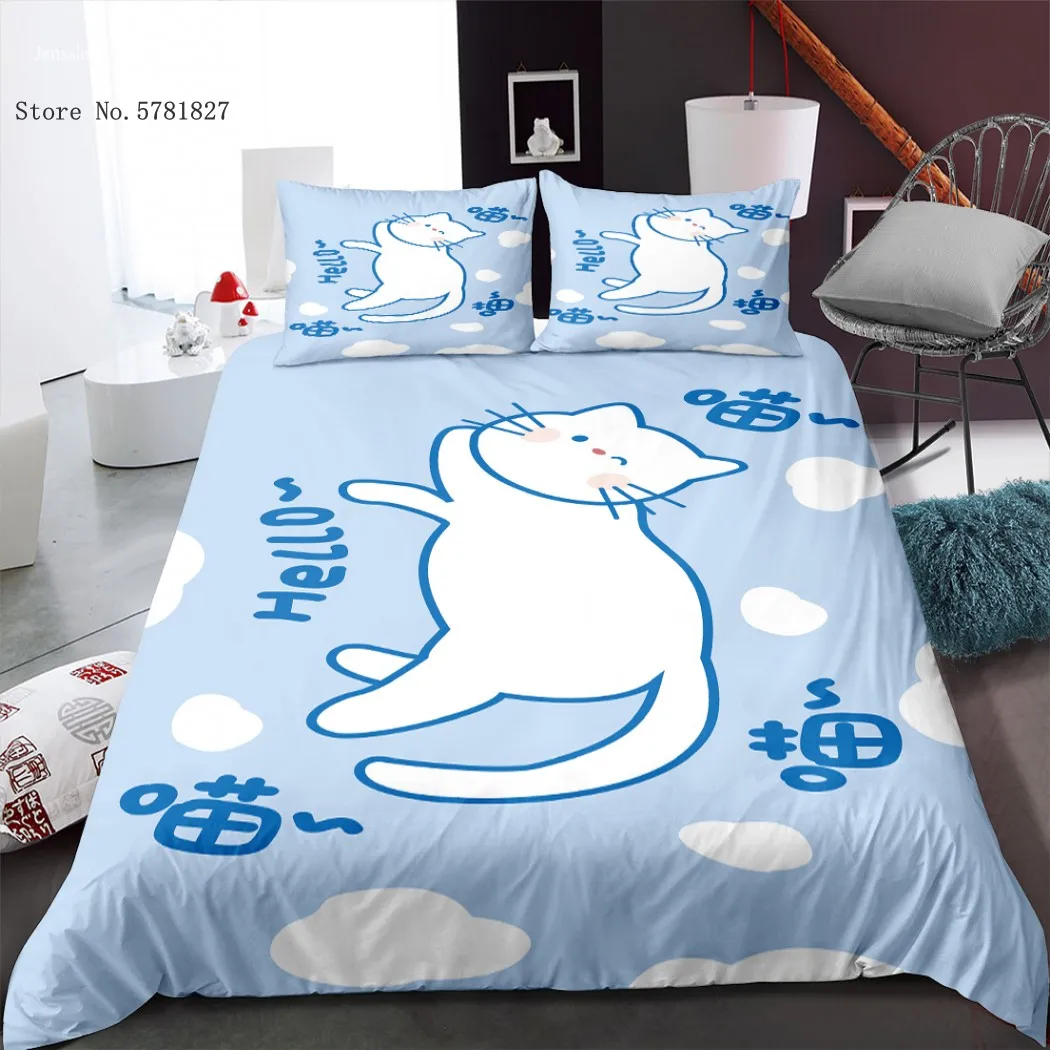 Комплект постельного белья из 23 предметов с милыми кошками, пододеяльник с 3D рисунком кавайных животных из мультфильмов, простыня для односпальной и двуспальной кровати, пододеяльник (без простыней)