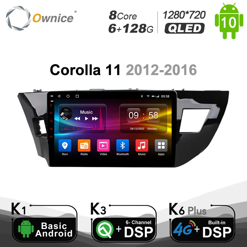 6G + 128G Ownice Android 10,0 DSP автомобильное радио GPS 4 Гб + 64 ГБ для Toyota Corolla 11 2013 2014 2015 - 2017 4G LTE SPDIF 1280*720 BT 5,0 Подходит для Для Toyota Corolla 11 2014-2015 Для Toyota Corolla 11 2013-2017 (правый Привод) Для Toyota Corolla 11 2012-2016 Если оригинальное автомобильное радио имеет функцию ниже, совместим ли блок Ownice Head? * Управление рулем --- да* Информация о состоянии воздуха, информация о расходе топлива, обратная Направляющая линия, настройка Центрального управления --- да* Оригинальная AUX / USB/обратная камера --- да* Оригинальный усилитель JBL --- Да, поддержка Внимание: Приведенная выше информация только для справки, иногда она может не быть совместима с некоторыми автомобилями, потому что автомобили производятся в разных странах в разных летних вариантах, спасибо за понимание. K6 Plus 128G ---UIS7862| Android 10,0 |8 ядер (A75 * 2 + A55 * 6) | 6G + 128G | 2.5D + IPSQLED 1280*720 | Радио 7708 | Усилитель 7851L K6 Plus 64G ---UIS7862| Android 10,0 | 8 ядер (A75 * 2 + A55 * 6) | 4G + 64G | 2.5D + IPSQLED 1280*720 | Радио 7708 | Усилитель 7851L K6 Plus 32G ----UIS7862| Android 10,0 | 8 ядер (A75 * 2 + A55 * 6) | 3G + 32G | 2.5D +IPS QLED 1280*720 | Радио 7708 | Усилитель 7388 K3-PX5 ------ PX5 | Android 10,0|8 ядер | 2G + 32G | 2.5D + TN1024*600 | Радио 7708 | Усилитель7851л K3-PX6 ------ PX6 | Android 10,0 | 6 ядер (A75 * 2 + A53 * 4)| 4G + 64G | 2.5D +IPS 1280*720 | Радио 7708 | Усилитель 7851LK1-Low ------- AC8227L | Android 6,0 | 4 ядра| 1G + 16G | 2.5D + TN 1024*600 | Радио 7786 | Усилитель 7388K1-High ------ AC8227L | Android 8,1 |4 ядра | 2G + 16G | 2.5D + TN 1024*600 | Радио 7786 | Усилитель 7388