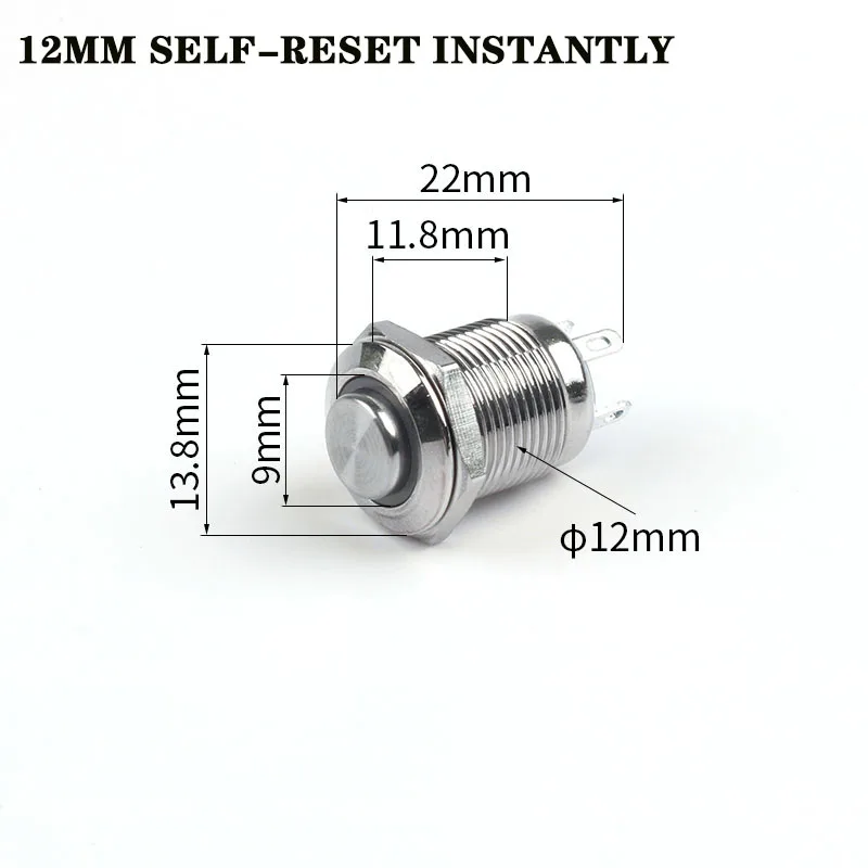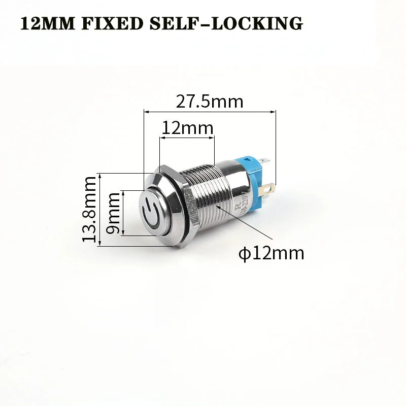 Переключатель с высокой головкой 12161922 мм, водонепроницаемый металлический кнопочный переключатель, плоская кнопка питания, круглая кнопка, самоблокирующаяся светодиодсветильник, самосброс