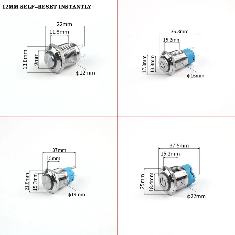 Страна: CL Color: LED green Size: 16mm Voltage: 12-24v Standard: Self-reset instantly Доставка: Cainiao Super Economy Global 06.12.2022