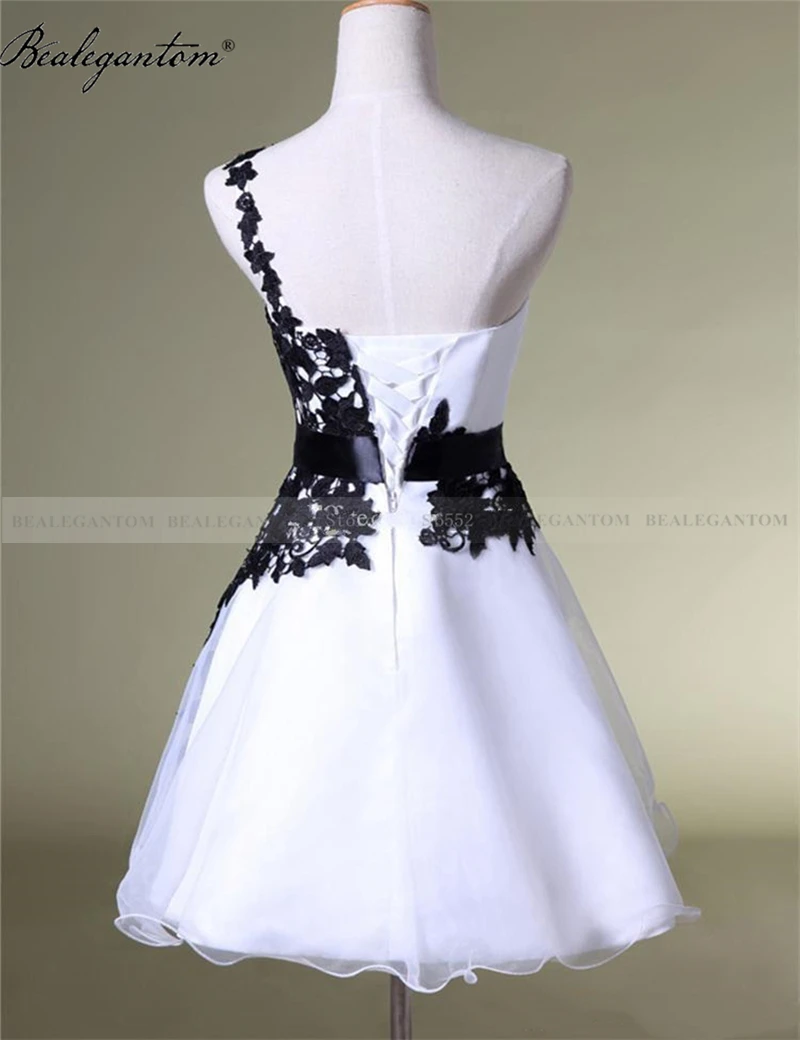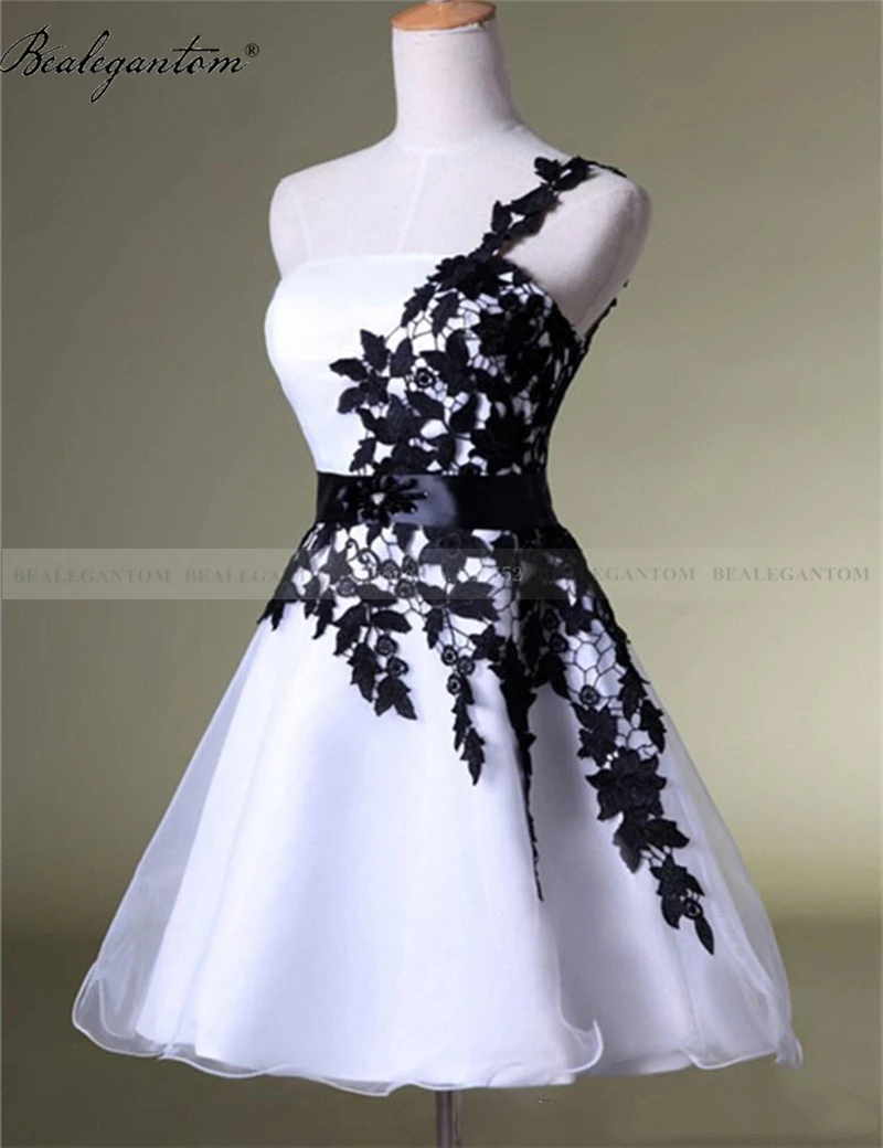 Короткие платья для встречи выпускников bejoy, белые и черные кружевные тюлевые платья на одно плечо с поясом и бусинами для выпускного вечера, коктейльного выпусквечерние вечера, платье для выпускного вечера