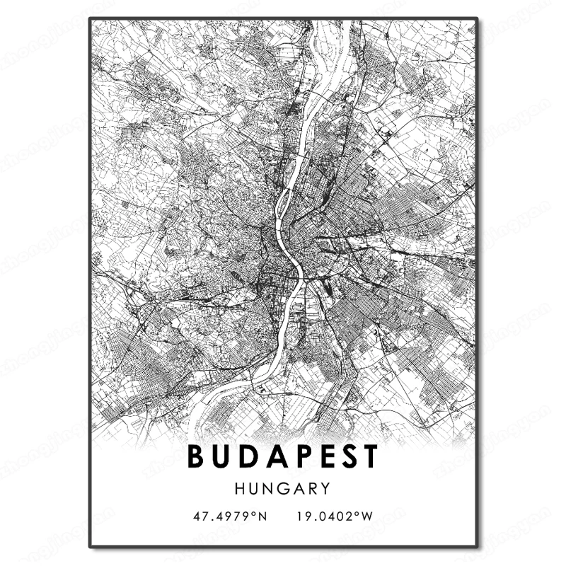 Черно-белая карта города, карта Будапешта, плакат, Венгрия, страна, HD печать, настенное искусство, холст, Скандинавская живопись для домашнего декора, художественное оформление
