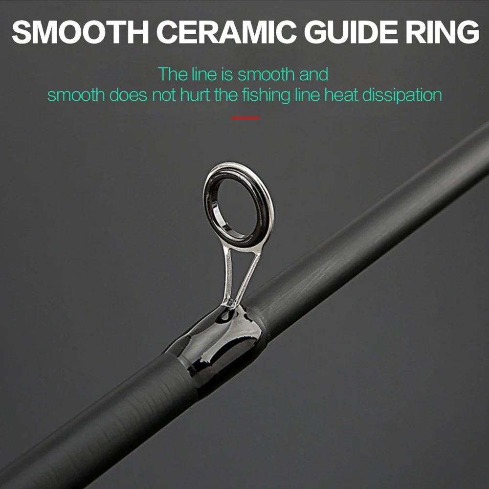 Особенности: 1. Материал из углеродного волокна, мощный, чувствительный, но светильник. 2 Высокопрочное и долговечное катушкодержатель, прочное и нескользящее. 3 высококачественных керамических направляющих кольца, минимизируют трение линии, эффективно рассеивают тепло, обеспечивают плавное отбрасывание при извлечении. 4. Защита окружающей среды и Нетоксичная крышка из АБС-пластика защищают направляющие от повреждений. 5 ручек из ЭВА высокой плотности, соответствует эргономичному дизайну, удобные и Нескользящие. 6 вы получите товар в индивидуальном пакете для удочек.