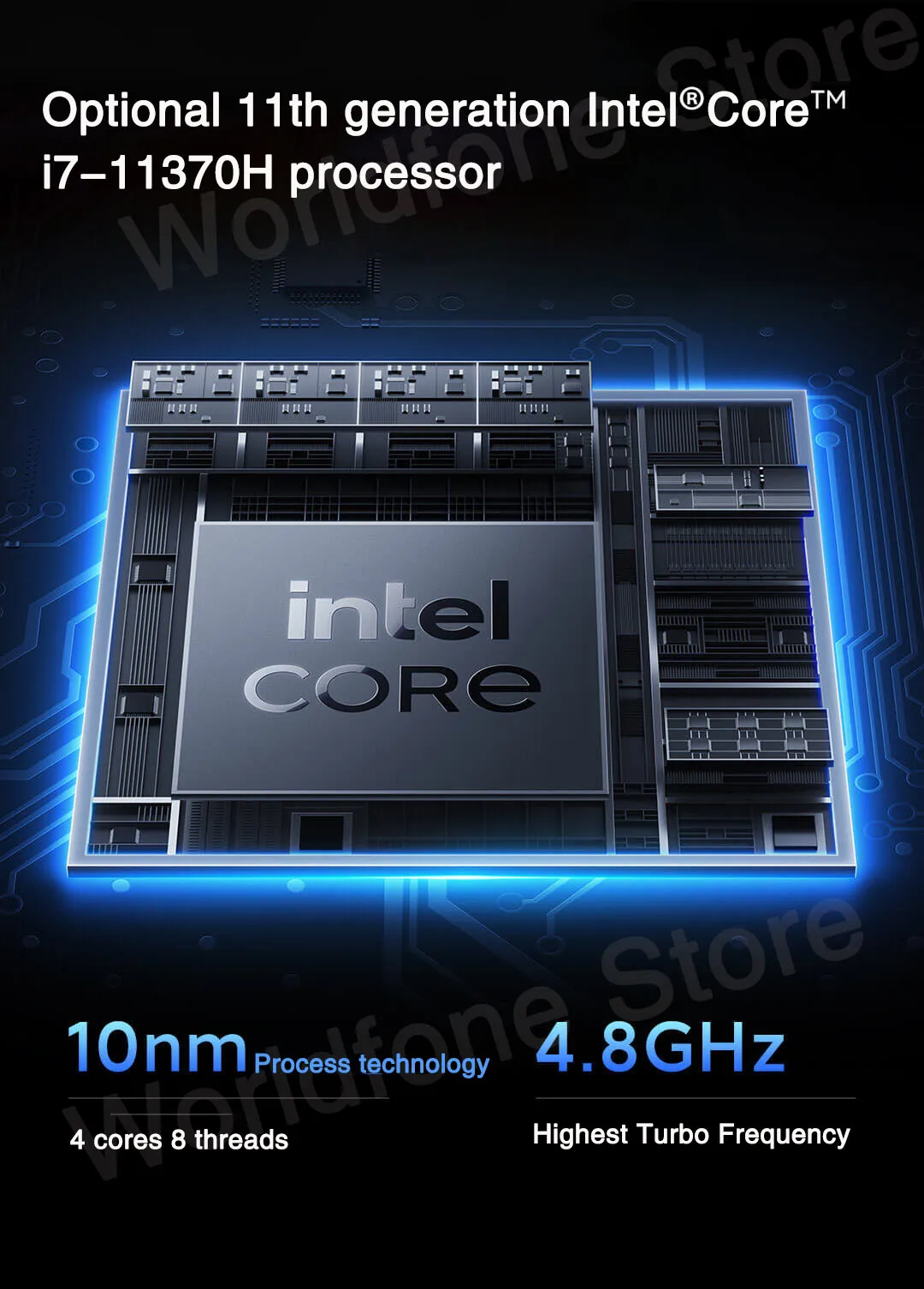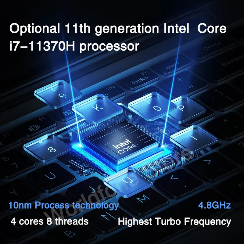 С 11 поколения Intel Core i7-11370H, максимальная частота Turbo4,80 ГГц, настраиваемая частота 3,30 ГГц, 4 ядра, 8 потоковИли 11-го поколения Intel Core i5-11300H Max Turbo4,40 ГГц), которые можно настроить частоту 3,1 ГГц, 4 ядра, 8