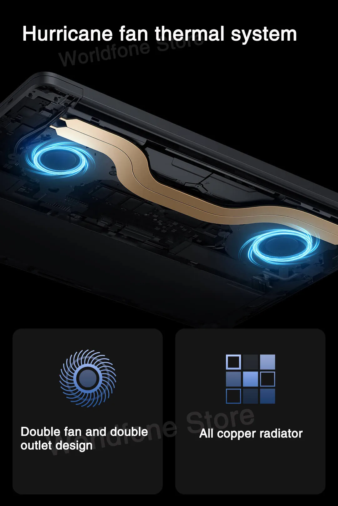 Двойной вентилятор и двойная розеткаМедный радиатор