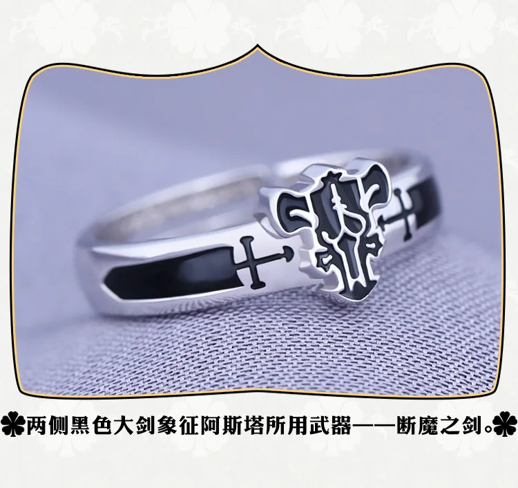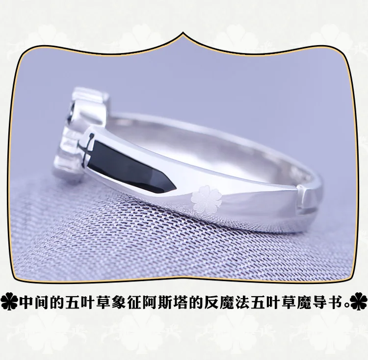 Серебряное кольцо с черным клевером аниме для косплея Аста Регулируемая унисекс фигурка на палец Ювелирное Украшение на день рождения Рождество модные повседневные подарки
