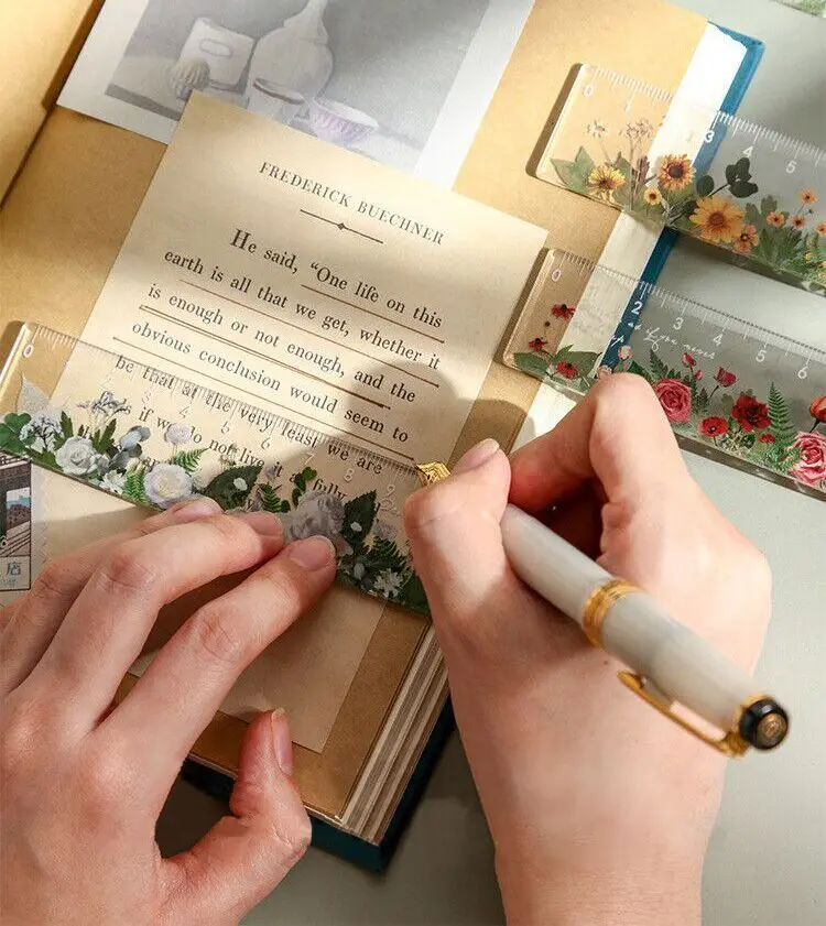 Пластиковая линейка, милые цветы, прямая Линейка, прозрачный акрило...