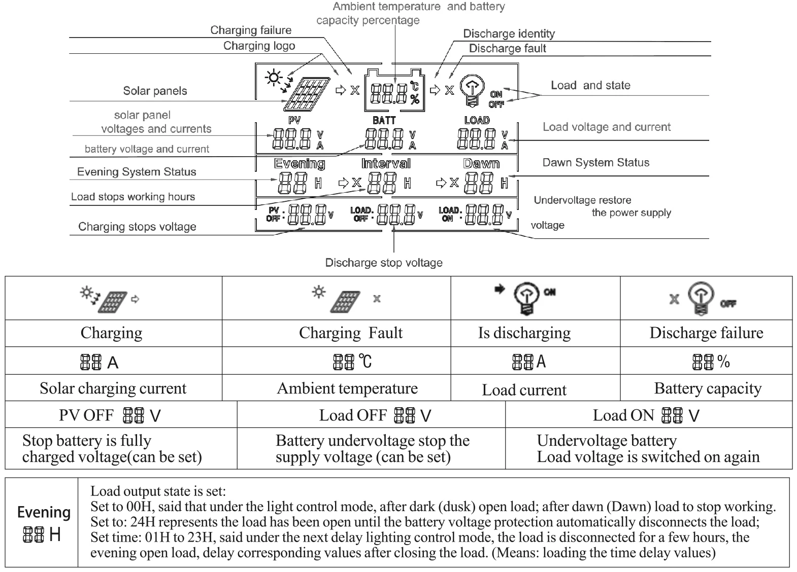 Это трехкратный контроллер в вечернее (вечернее) рабочее время, интервал отдыха или паузы, рассвет рабочее время (функция утренний светильник), пользователь может в зависимости от своих потребностей установить разное время.