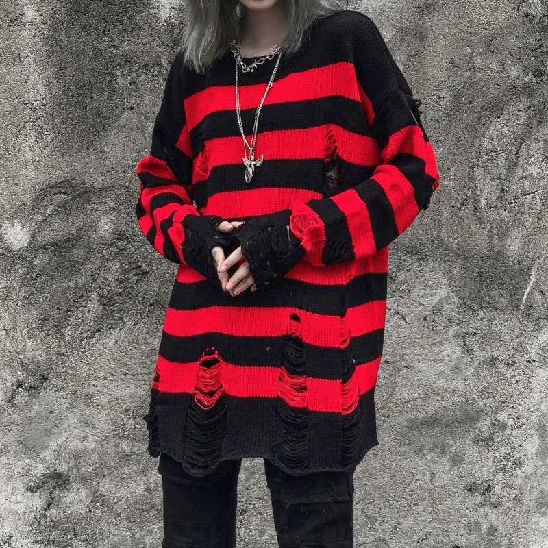 Женский свитер в полоску, вязаный пуловер оверсайз, модные топы с высоким берцем, женские уличные джемперы с длинным рукавом, свитера