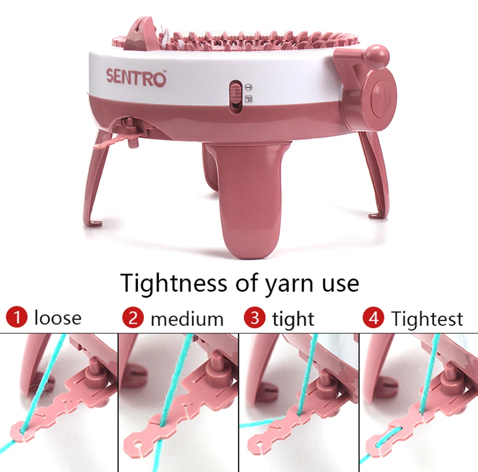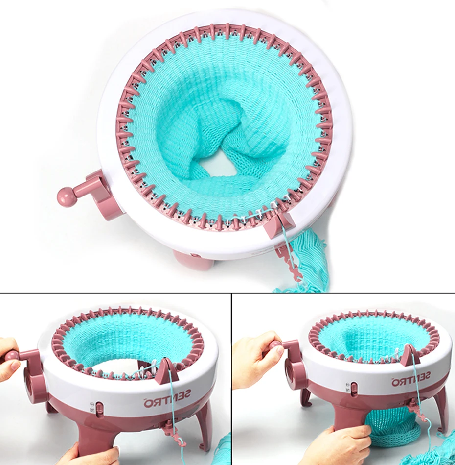 Эта ручная вязальная машина имеет двойной режим для удовлетворения различных потребностей. Т-образная петля трикотажная, после первого разворота до протечки зуба, начните вращение по часовой стрелке, чтобы сплетать цилиндрическую ткань, можно использовать как шляпу после отделки. P плоская вязка, вы можете регулировать ширину ткани в соответствии с вашими потребностями, и использовать иглу и вязание крючком, чтобы свободно сплайсинга в шарф и т. Д.