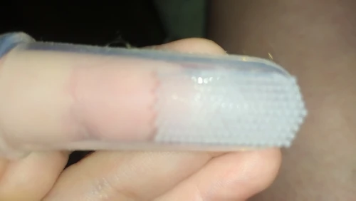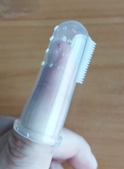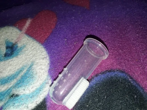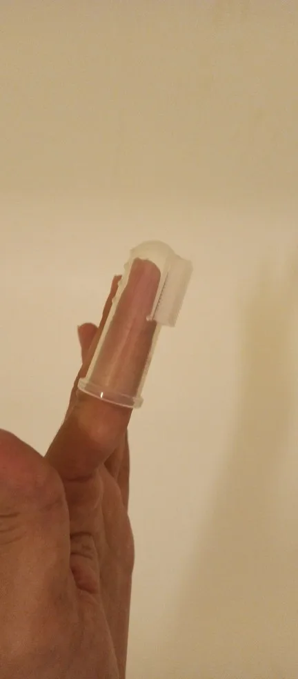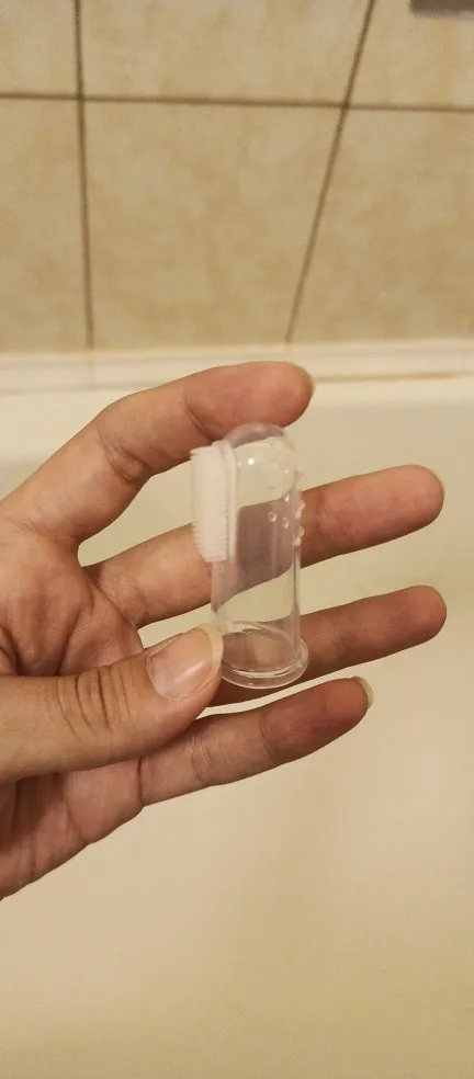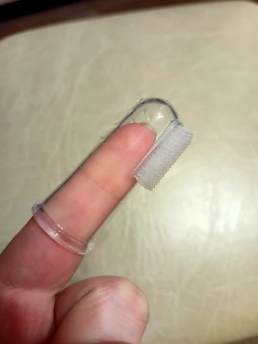 Покупала со скидкой за 2 цента, шло очень долго, думала не придёт. Но все отлично. Щётка полностью силиконовая, на пальце сидит плотно, щетина мягкая, тоже из силикона. Продавец честный, рекомендую.