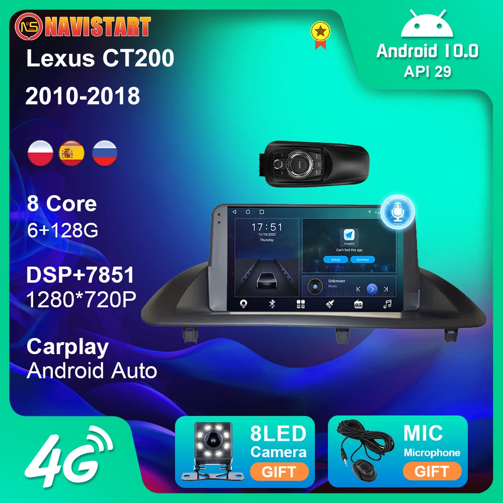Автомагнитола 6 + 128G, Android 10, для Lexus CT200, CT200h, 2010-2018, GPS-навигация, Android, 4G, Wi-Fi, BT, DVD-плеер для Carplay