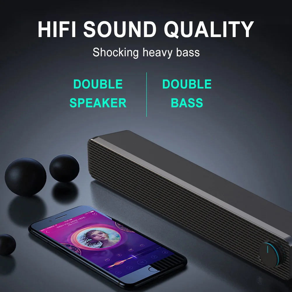 Звуковая панель Bluetooth, двухканальная, портативная, беспроводная, для ТВ, ПК, телефонов, планшетов, домашнего кинотеатра