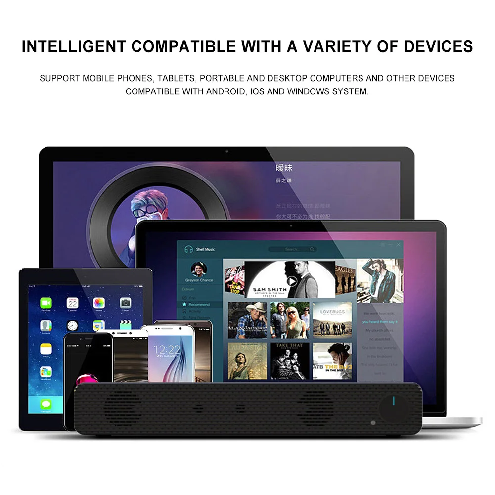 1. Отличное качество звука: Эта звуковая панель имеет два мощных сабвуфера Высококачественные колонки и два встроенных, которые не только обеспечивают чистый звук по широкому диапазону звука, но также обеспечивают объемный 3D стереозвук на 360 ° для вашего любимого домашнего кинотеатра. Если вы любите кино или музыку, эта отличная звуковая панель станет лучшим выбором для наслаждения любимой музыкой.2. Простота использования: компьютерные колонки питаются от USB, а звуковая панель проста в установке. Просто подключите USB к компьютеру и начните его использовать. С кнопкой вращения работать проще.3. Подключение и подключение: Вы также можете использовать кабель AUX и кабель RCA для подключения различных электронных устройств. Обратите внимание, что наша линия RCA (1 стерео гнездо на 2 RCA штекер) может легко вставить и удалить линии AUX.4. Домашний декор: этот чисто качественный бар отличается шикарным и стильным дизайном, который определенно подчеркивает ваш домашний декор. Новый дизайн будет сочетаться с звуковой платой в разных стилях домашнего декора. Муж будет наслаждаться качеством звука, а жена останется довольна дизайном, который является беспроигрышным выбором для всей семьи.5. Портативная колонка: когда вы идете смотреть любое ТВ-шоу, смотрите фильм, слушайте концерт или смотрите футбольный матч, просто Носите с собой эту портативную мини-звуковую панель и наслаждайтесь в любое время в любом месте.Характеристики:Bluetooth: 4,2Цвет: черныйКод: WFO6 (название Bluetooth)Импеданс: 4QКанал: двухканальный стереоОтношение сигнал-шум: ≥ 60 дБУправление: ручкаЧастотный диапазон: 300 Гц ~ 20 кГцНапряжение: 5 ВБасовое отверстие: 2Длина лески: около 1,35 метров/дюймаМощность: 3 Вт x 2Размер: около 400*60*58 мм/15,75*2,36 * 2.28inУпаковочный лист:Динамик * 1Аудиокабель * 1USB-кабель * 1Инструкция * 1