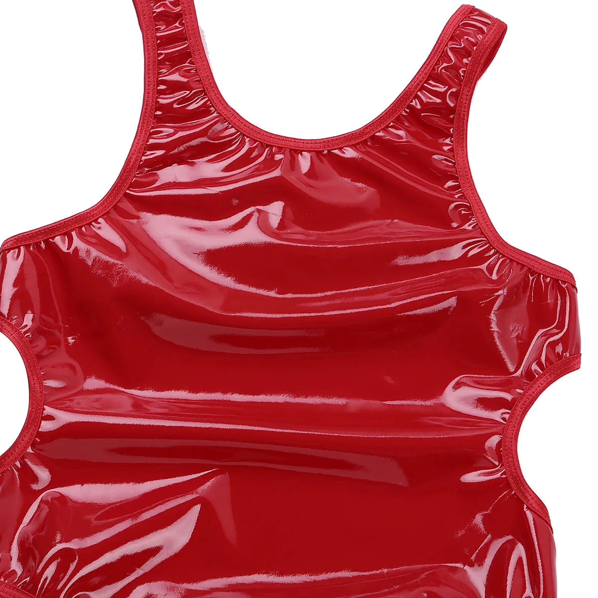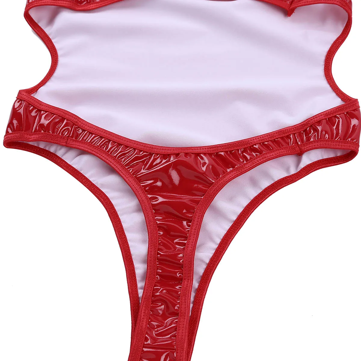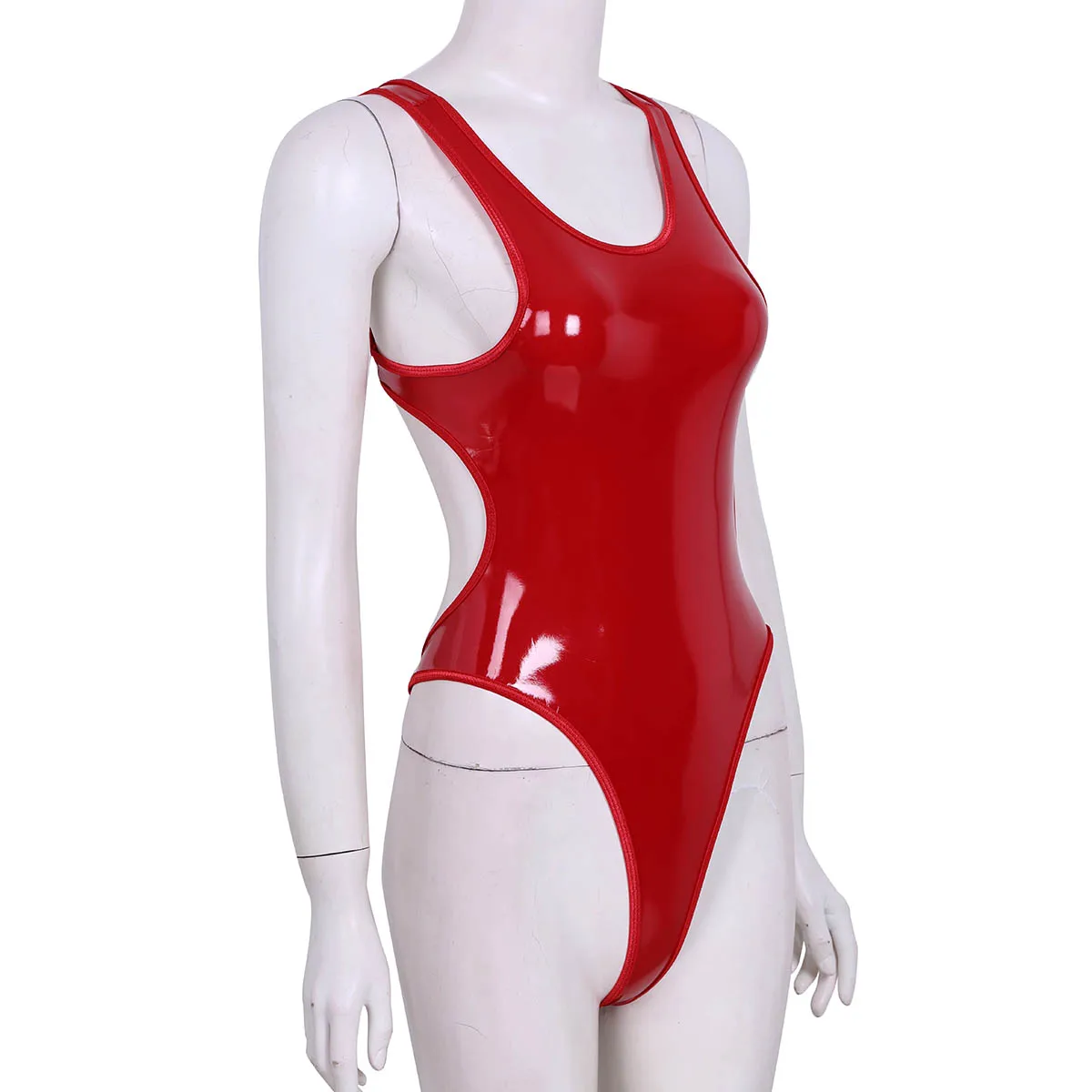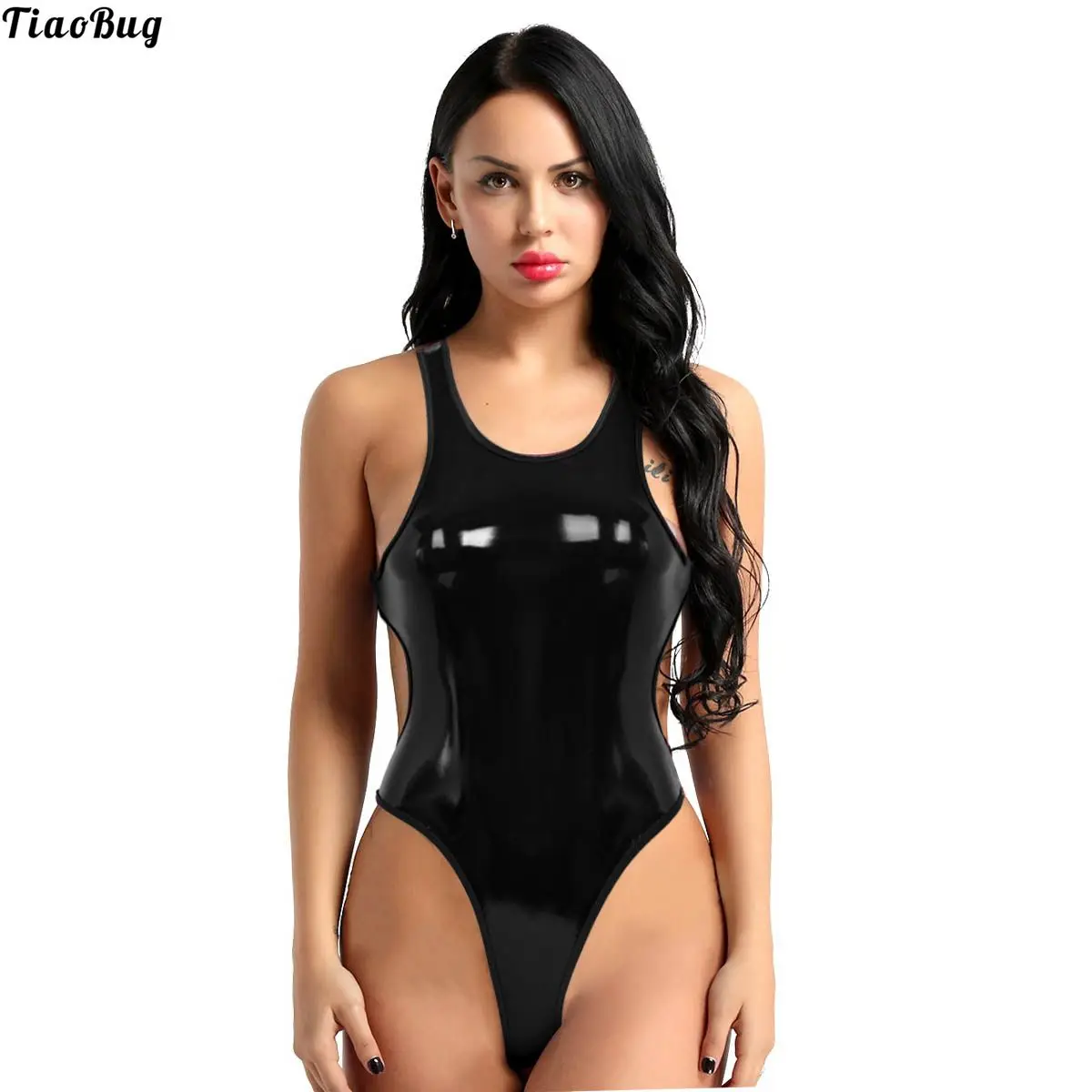 Женский цельный купальник TiaoBug из искусственной кожи без рукавов с открытой спиной и высоким вырезом стринги трико боди Ночное белье Клубная одежда