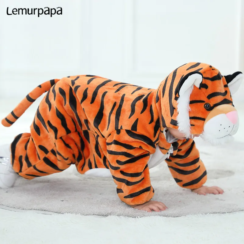 2021 детская одежда, комбинезон, животные, леопард, панда, тигр, для маленьких мальчиков, детские комбинезоны для новорожденных, теплый праздничный комбинезон на молнии