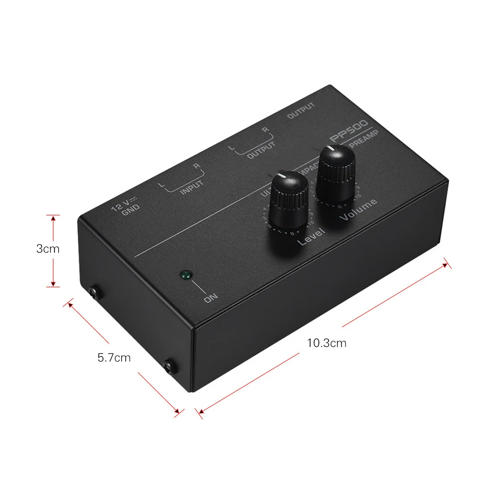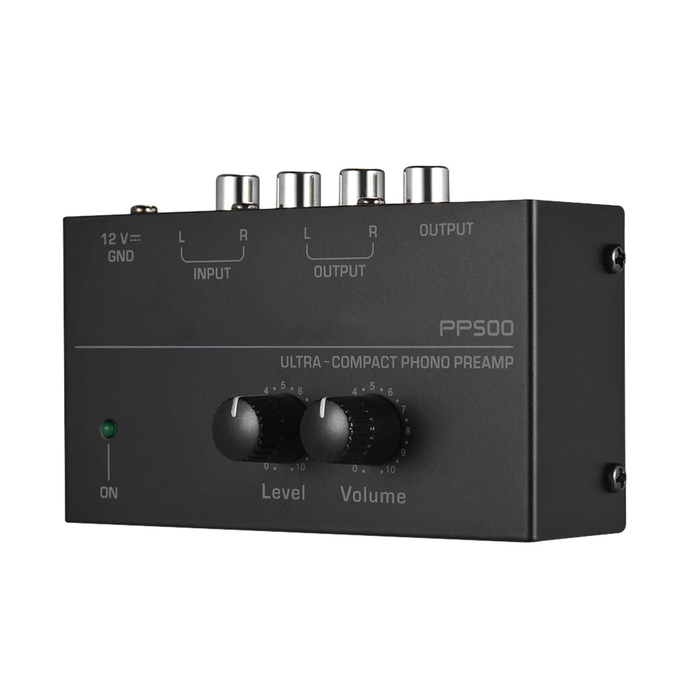 PP500 сверхкомпактный фонокорректор, предусилитель, портативный фонокорректор, низкочастотный баланс, регулятор громкости, тональный эквалайзер с адаптером питания