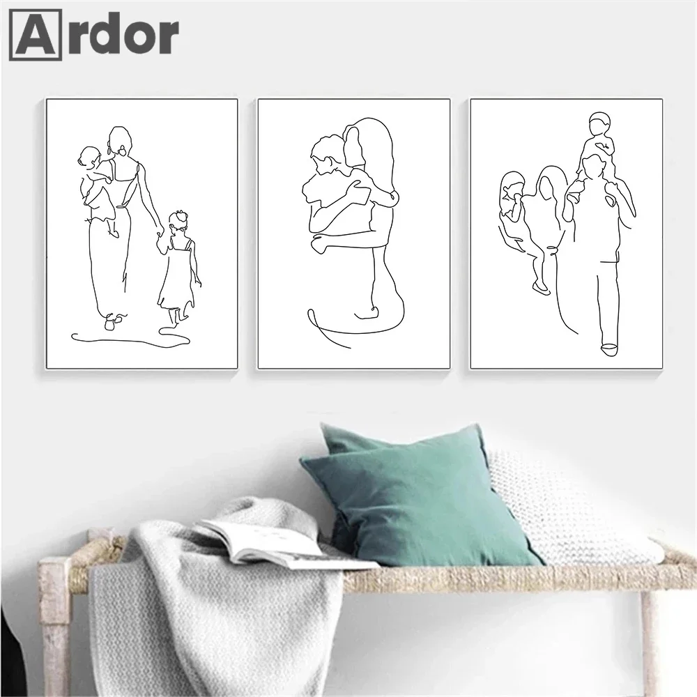 Абстрактная любовь рука семейная линия Рисование плакаты принты мин...