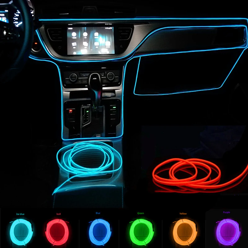 Аксессуары для салона автомобиля, 5 м, атмосферная лампа, холодсветильник, линия с USB, сделай сам, декоративная приборная панель, Автомобильный светодиодный окружающий свет s