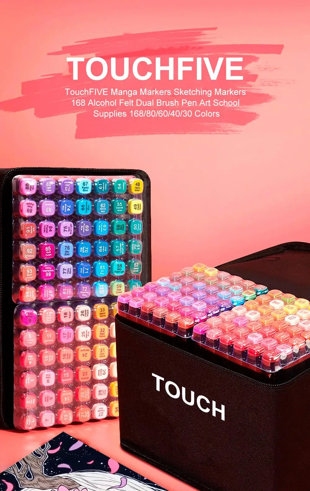 TouchFIVE 30406080168 цветов маркеры манга эскизные маркеры 168 двойная кисть авторучка спиртовая войлочная искусство школьные принадлежности Набор для рисования