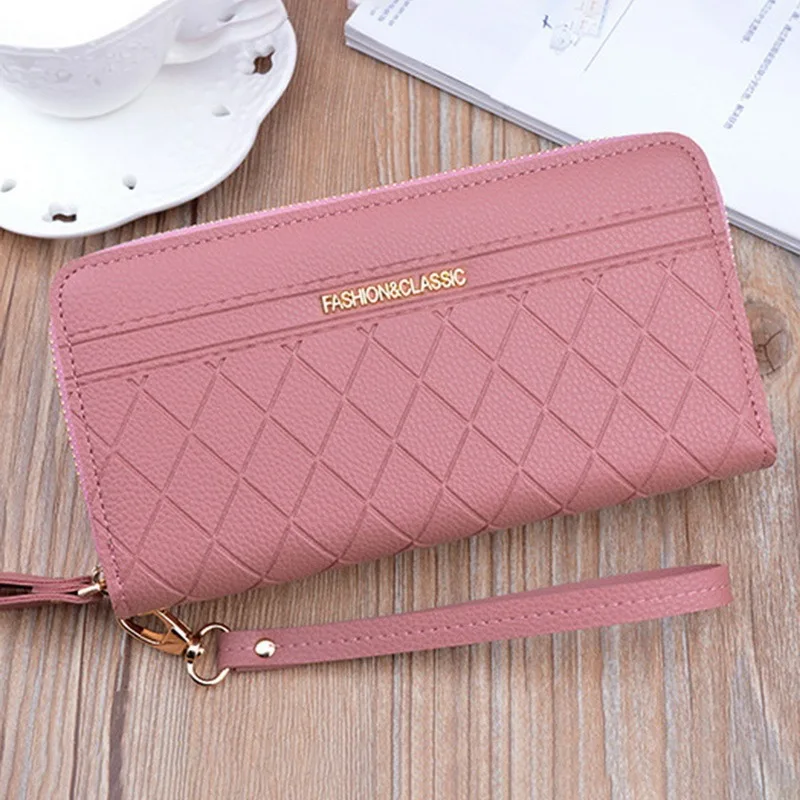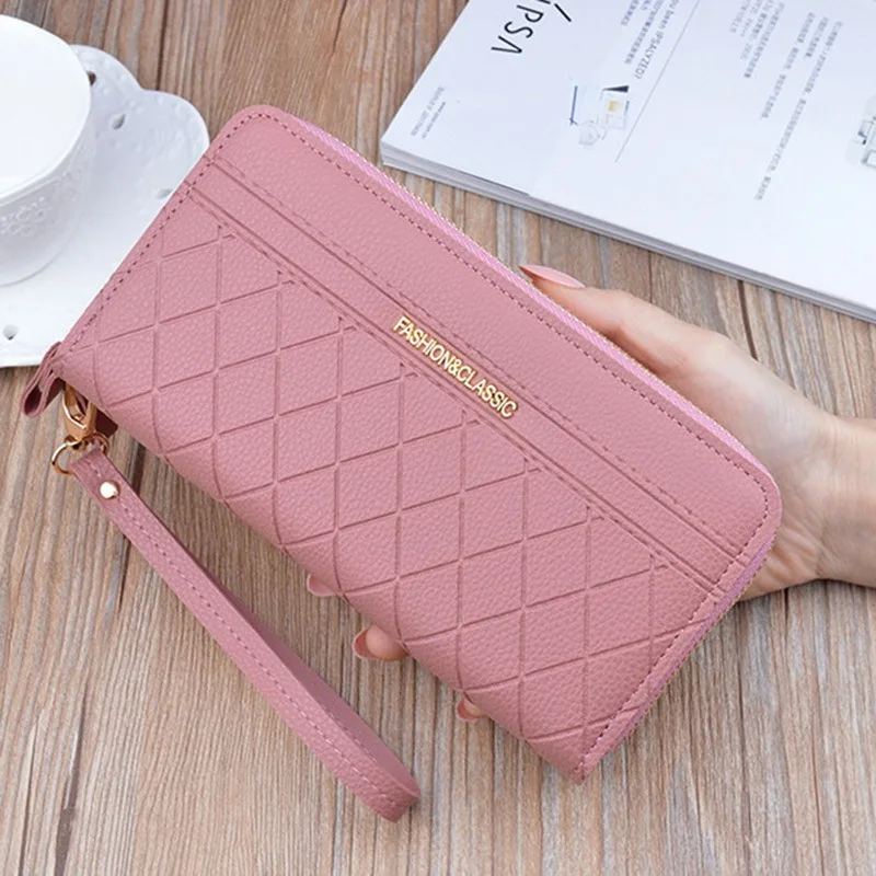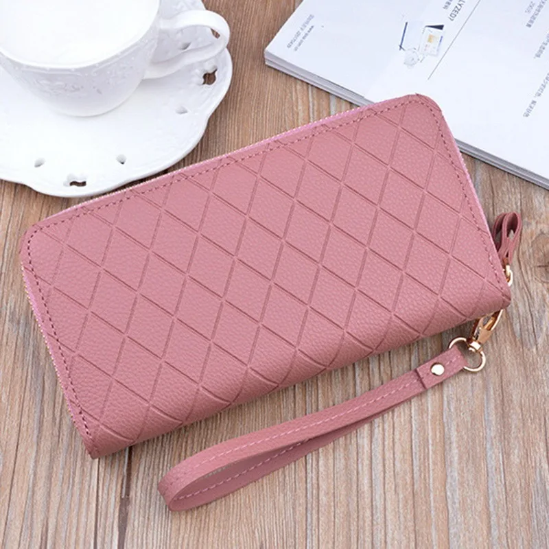 Кошелек Lozenge в клетку на двойной молнии, Женский кошелек из искусственной кожи, Длинный кошелек, вместительный женский клатч, сумки с держателем для карт 2021
