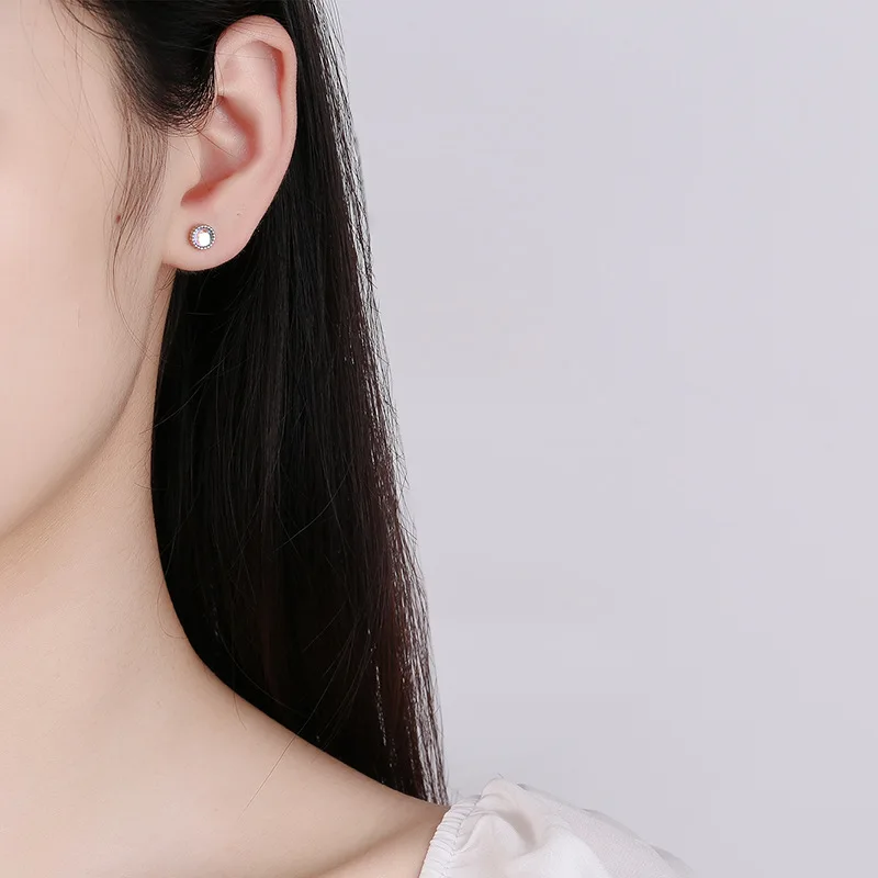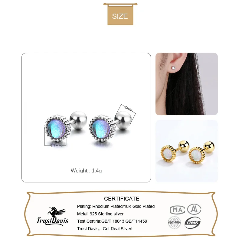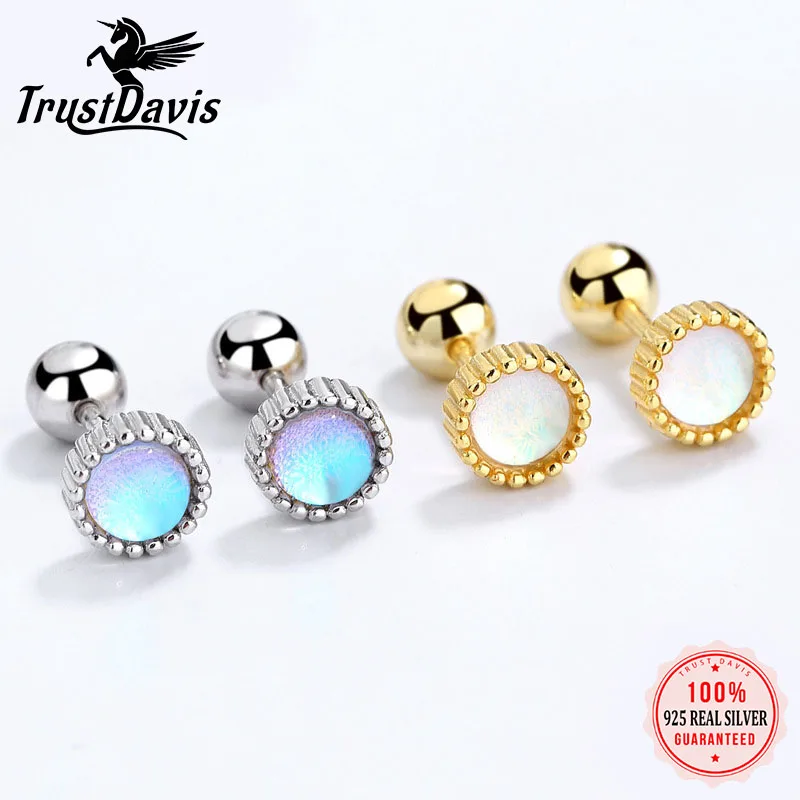 TrustDavis настоящие 925 стерлингового серебра милые круглые лунный камень винтовые серьги для женщин детей девочек минималистские ювелирные изделия DB1428