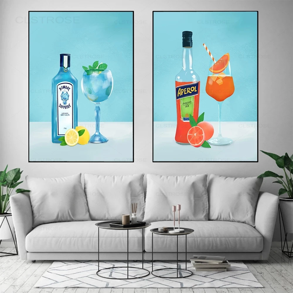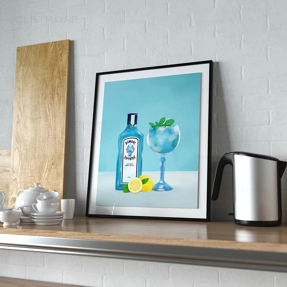 Постер и печать в современном синем стиле для коктейлей, окрашенный на холсте кухонный бар, настенный художественный декор для кухни