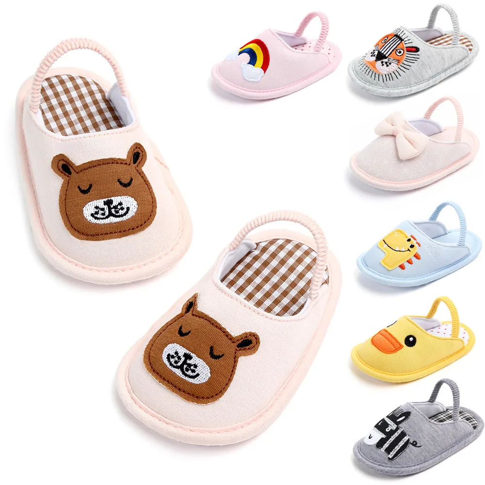 Детские домашние тапочки из хлопка, Осень-зима 2021, домашняя нескользящая обувь для маленьких девочек и мальчиков с мягкой подошвой и животным рисунком, детская обувь для новорожденных