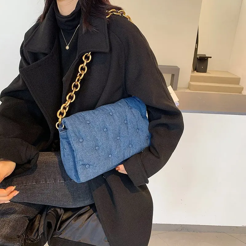 2021 дизайнерские женские сумки, джинсовая женская сумка с толстой ...