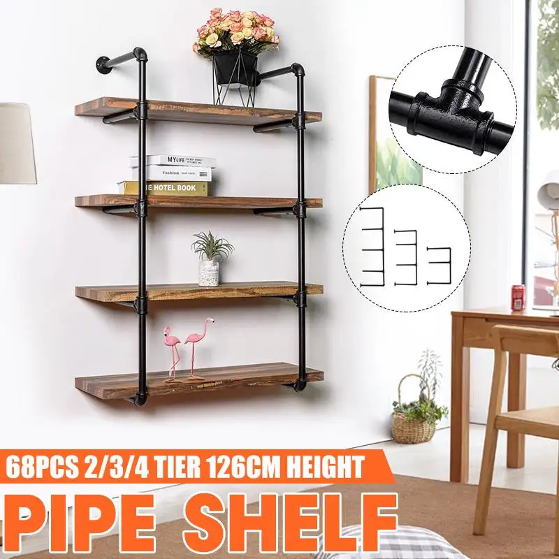 Промышленные настенные железные трубы, 2/3/4 ярусные полки для труб, DIY стеллажи с металлической рамой, промышленные стеллажи для кухни, спальни, гостиной, домашнего декора, деревенский декор стен (без дерева)