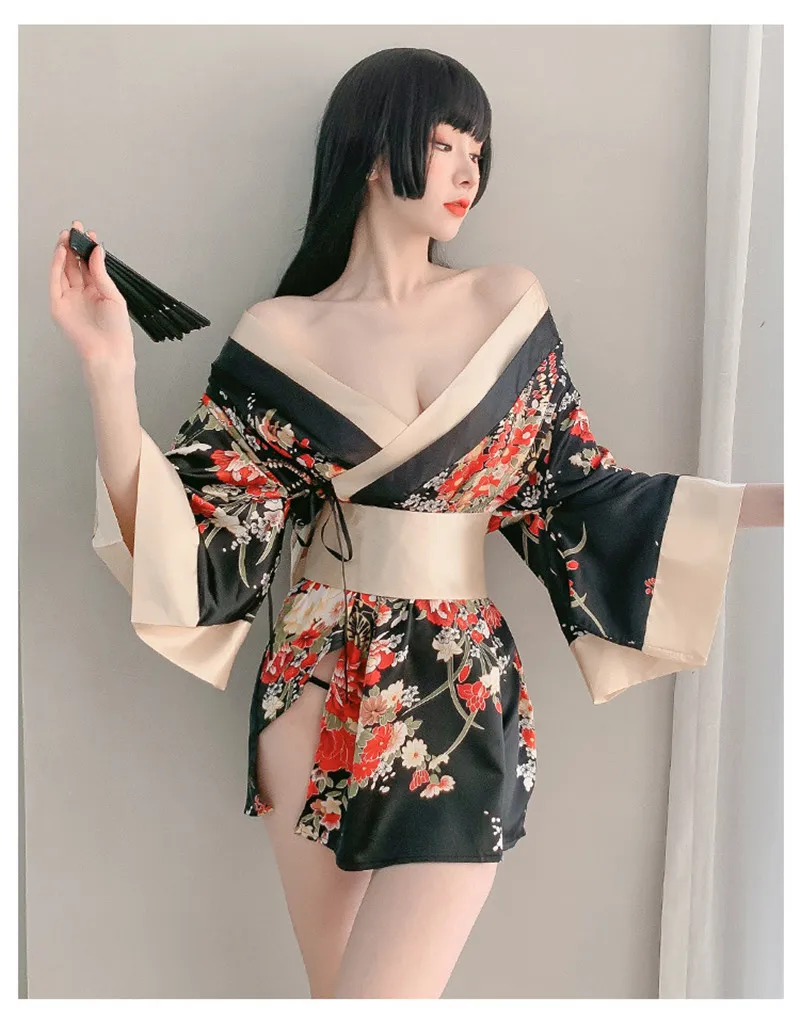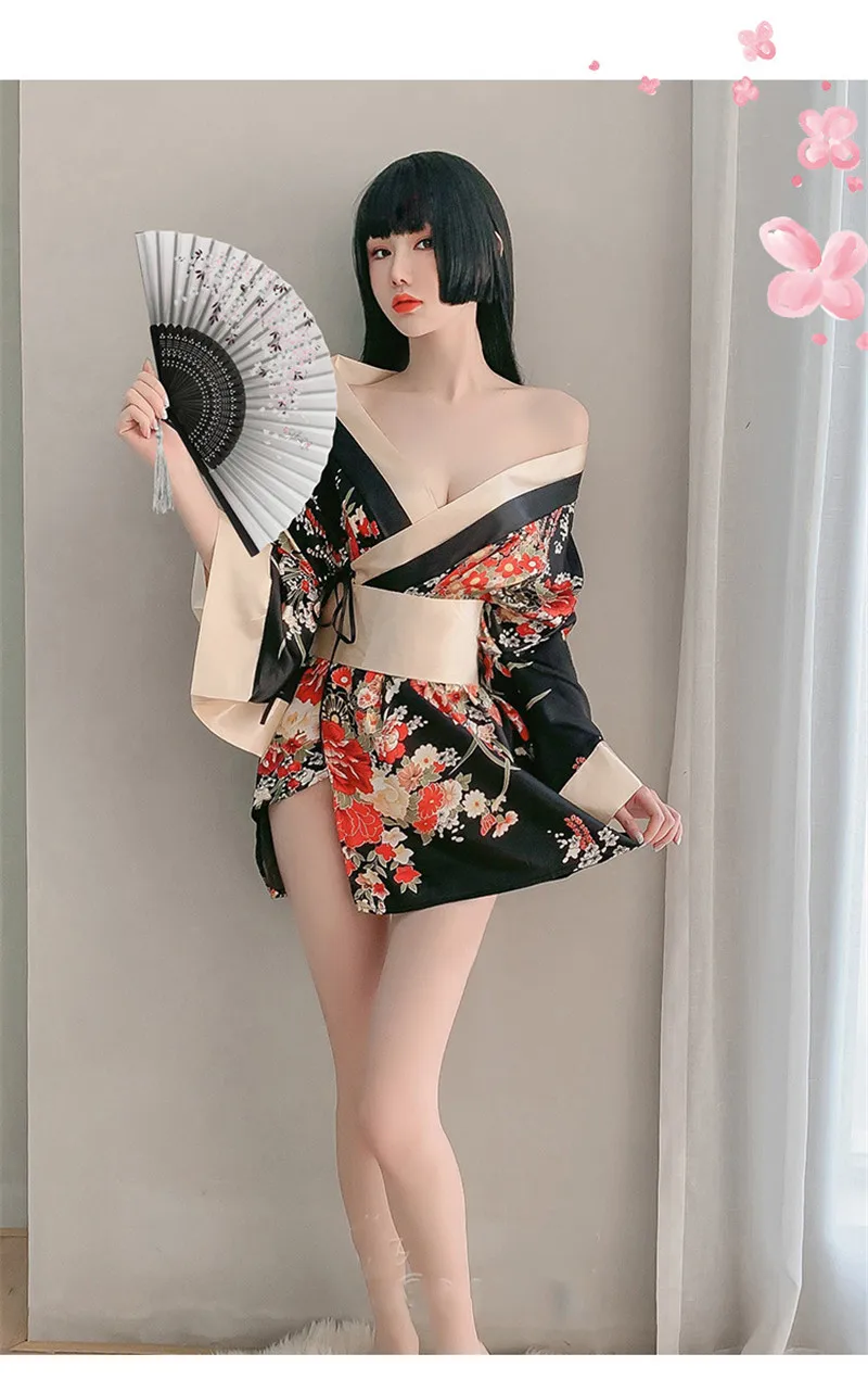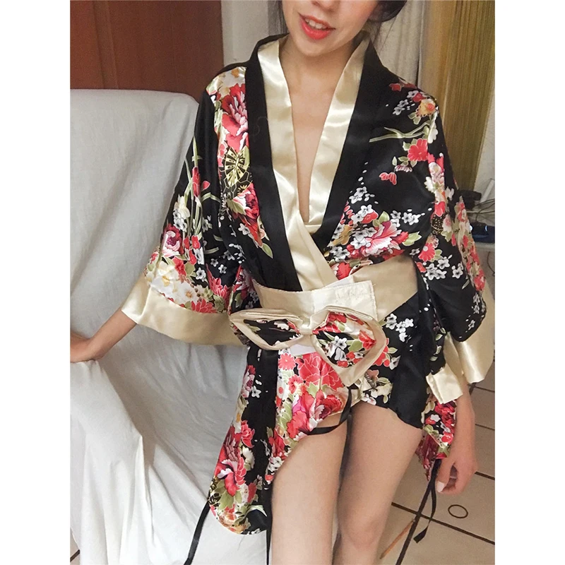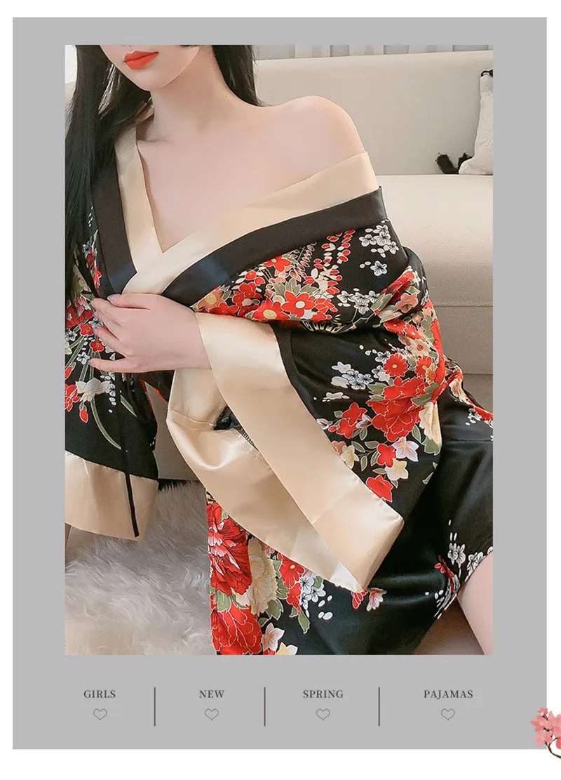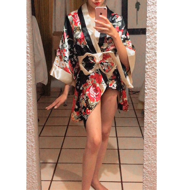 Женское кимоно с цветочным принтом, традиционное винтажное кимоно с Оби