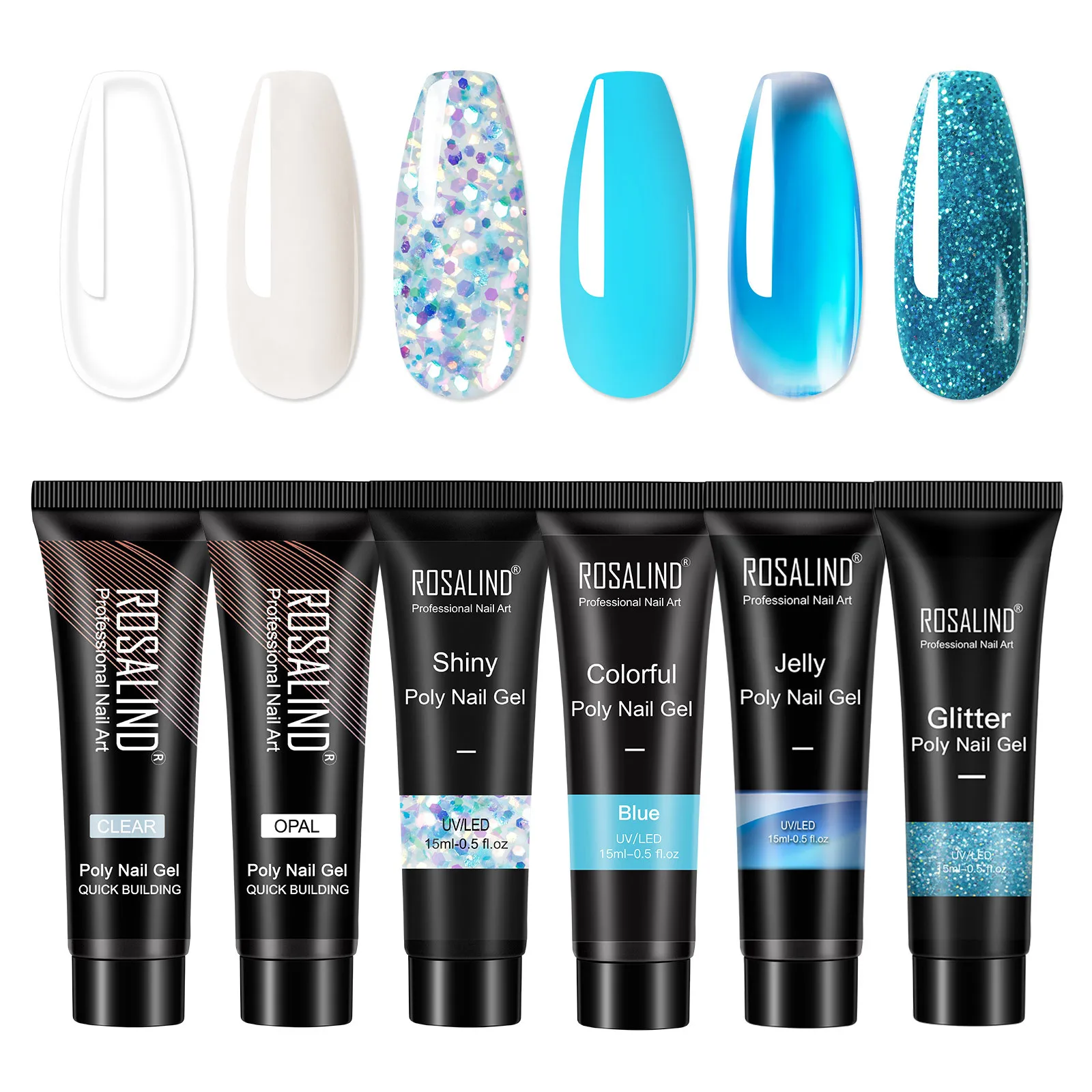 Набор клея для наращивания ногтей Rosalind, 6 шт., полуперманентный Профессиональный кристаллический полигель для дизайна ногтей, набор для дизайна ногтей, 15 мл