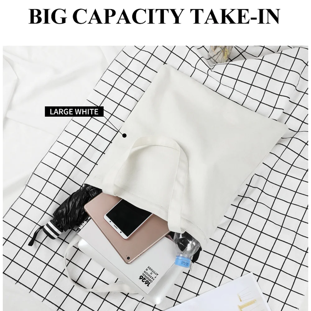 Холщовая Сумка для покупок, классические белые студенческие тоуты, ...