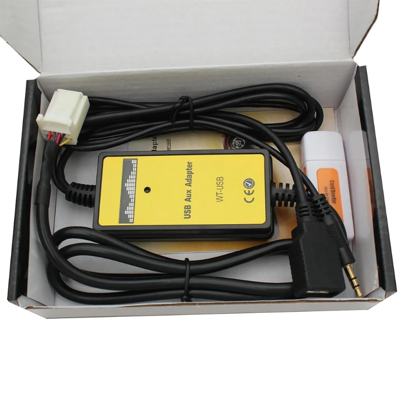 100% новый и высокое качествоПодключение через автомобильный C D проигрыватель напрямую, неразрушающая установка.Управляйте музыкой и громкостью с помощью автомобильной радиопанели или рулевого колеса.Умный дизайн, прост в установке и использовании.Поддержка 3,5 мм с разъемом подачи внешнего сигнала AUX вход переменного тока, высокого качества MP3/WMA декодер доска, пусть музыка очаровательно.Без помех сигнала, нет необходимости устанавливать baterry.