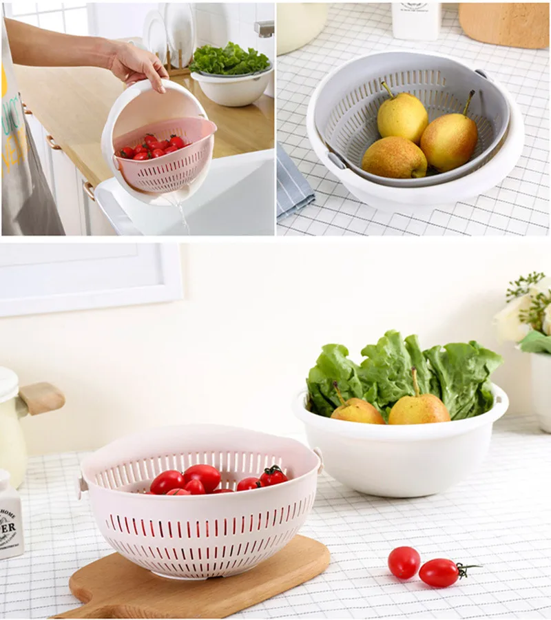 Двухслойная раковина для мытья овощей, кухонная раковина, вращающаяся раковина, корзина для хранения, кухонные аксессуары