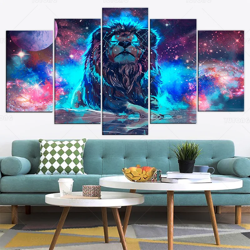 Картина на холсте с абстрактным изображением Лев, туманности, созвездия Льва, Постер для декора помещений, картина по зодиаку, Настенная картина в рамке, 5 шт.