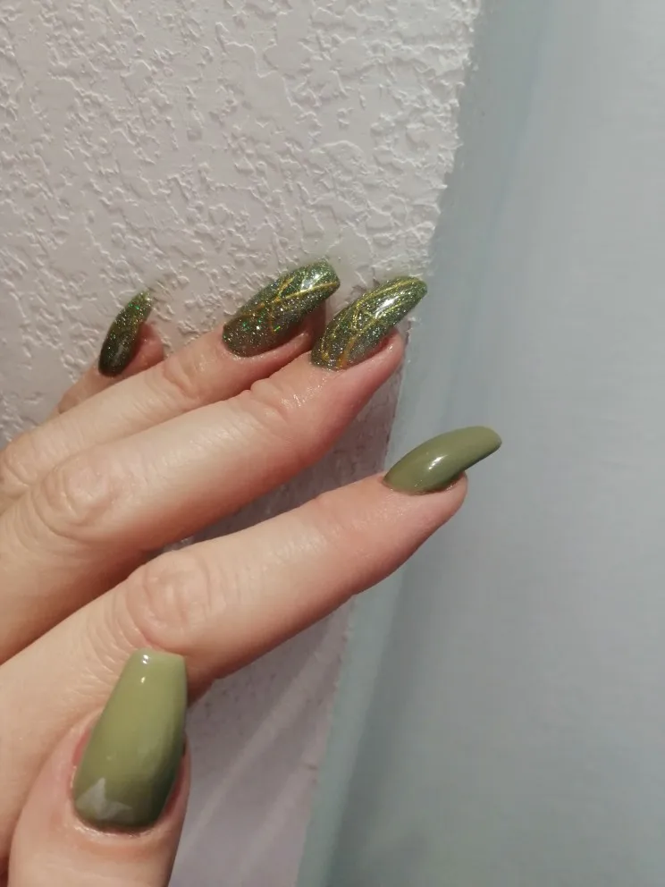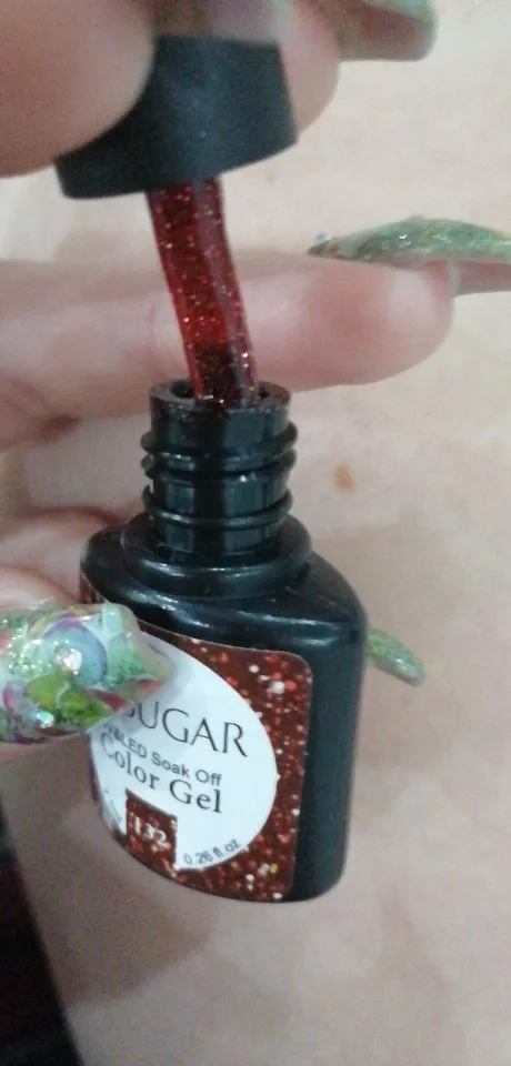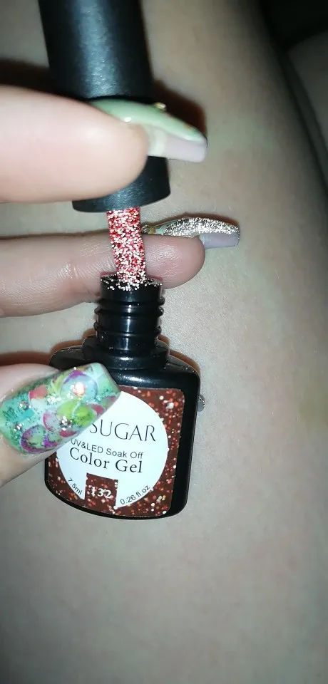 Доставка 2 месяца. Лак действительно блестит мелкими блёстками, но на солнце переливается в золото, а в тени лёгкое мерцание. Выглядит эффектно, но консистенция честно сказать так себе, не очень, на троечку. Наносится как сопли, плешивит жутко, чтоб получилось более- менее плотно, надо нанести в три слоя и от этого ногти утолщаются и исходная форма портится, плывёт, нет уже чёткости. Это конечно существенный недостаток. А ещё продавец положил вместо синего два зелёных.