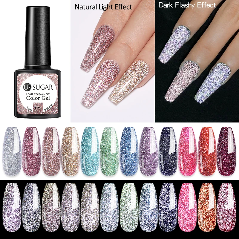 Лак для ногтей UR SUGAR, 7,5 мл, отражающий, блестящий Гель-лак для ногтей, розовый, золотой и серебряный цвета, блестящий эффект, гибридный лак для ногтей