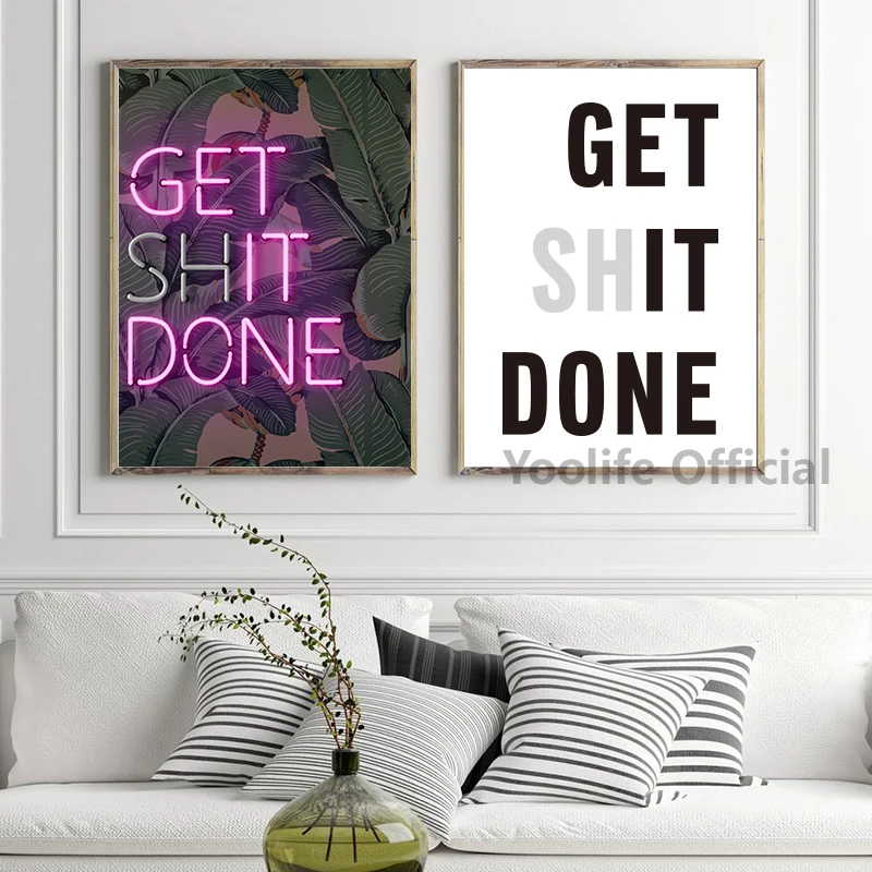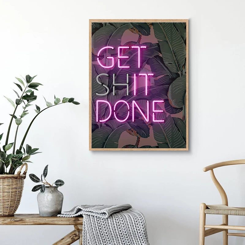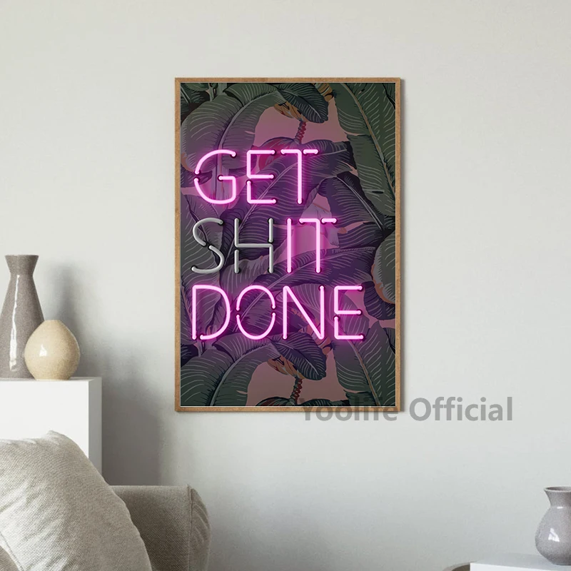 Готово, неоновая вывеска, принт в виде банановых листьев, искусство, Картина на холсте, вдохновляющая Настенная картина, декор для домашней комнаты