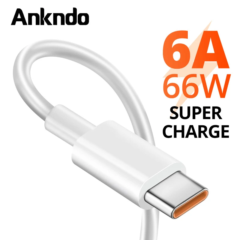Кабель ANKNDO 66 Вт USB C, кабель для сверхбыстрой зарядки для Xiaomi, Samsung, Huawei P30, P40, кабель для передачи данных Тип C, 6 А, шнур для зарядного устройства
