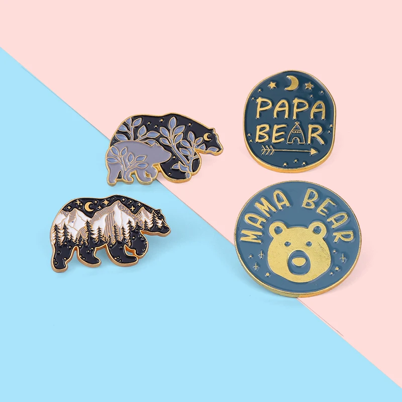 Эмалированные булавки с изображением леса звездных животных, медведя мамы, коричневого медведя, гор, фиолетовых листьев, детских фотографий, подарки для родителей, бижутерия для семьи